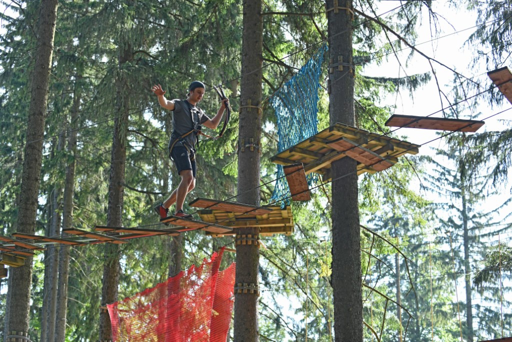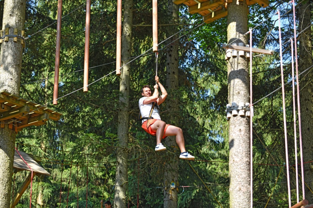 Vybrat si můžete z 5 -ti tras různých obtížností od modré trasy pro středně pokročilé až po černou trasu pro lanové experty. V lanovém parku si můžete také vyzkoušet adrenalinový okruh s lanovými přejezdy a vaše děti mohou vyrazit na růžový dětský okruh.
