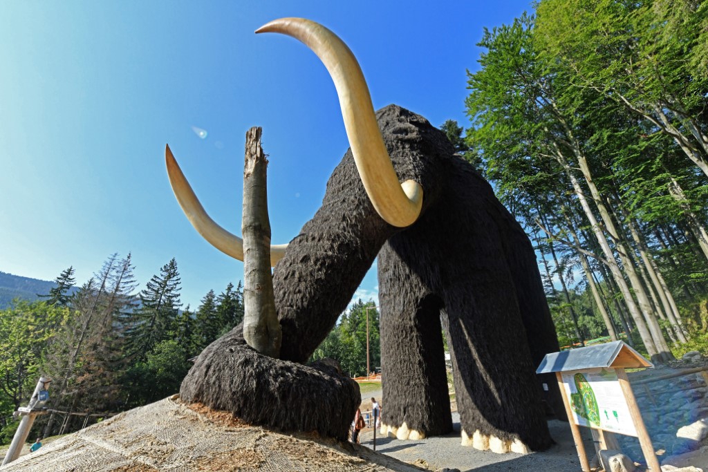 Největší mamut na světě.......vyrostl na Dolní Moravě. Obří mamut vzdělává a baví ve dvou patrech. Uvnitř mamuta najdete točité schody v předních nohách mamuta, lanový šplhací komín nebo šplhací tunel se sedmi gumovými pásy. Ve druhém patře mamuta najdete hrací prales s popadanými dřevěnými kůly, tunely, lanovými liánami a dokonce i jeskyni. Přímo v chobotu mamuta je ukrytý 24 metrů dlouhý tobogán.