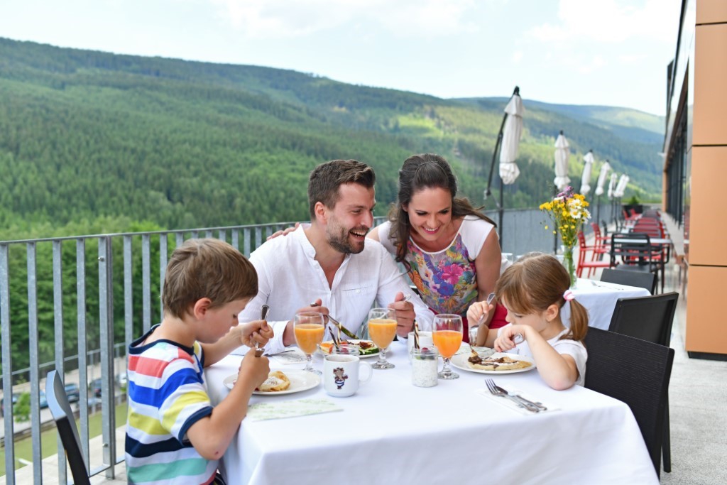 Wellness hotel Vista nabízí výbornou gastronomii, ubytování v luxusních apartmánech či pokojích. Součástí hotelu je wellness a saunový svět, který nabízí rodinné saunování, wellness procedury, sanouvé rituály. K dispozici jsou také animační programy pro děti a nudit se nebudou ani teenagery. Na své si přijdou i firmy, hotel nabízí kongresové prostory, zážitkové teambuildingové programy, kompletní catering. Wellness hotel se nachází u spodní stanice lanovky Sněžník, kterou se dostanete ke Stezce v oblacích.